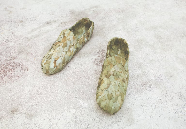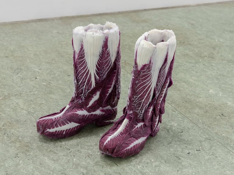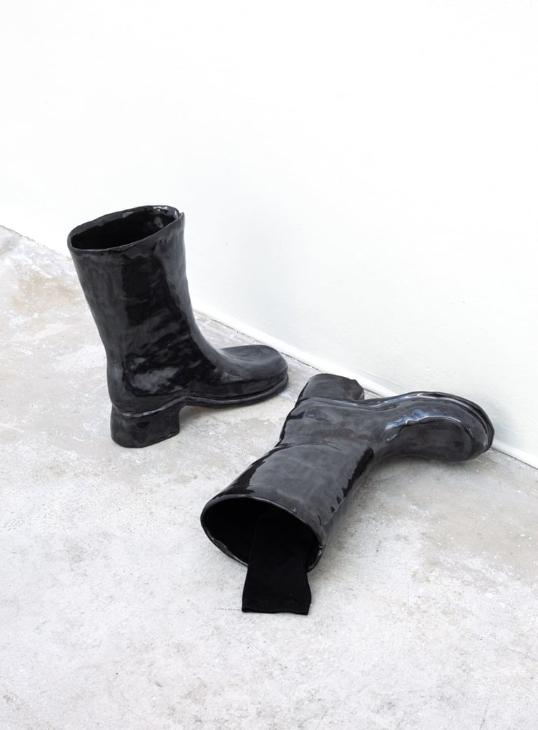 The pairs are border crossers between the human, the social and the natural. At the same time, they assert the presence of a whole body. Shoes are the silent foundations of a body, resisting the hard ground every day, being tireless companions and acting incredibly resistant in their tasks.