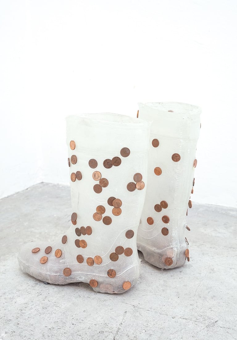 Epoxy resin, glass fibre, found cents, 53 x 30, 28 cm, 2021
