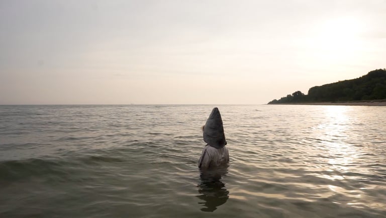 I'M TIRED OF CHOOSING, SO ILL TAKE THE MIDDLE is a video work that deals with the existence between two cultures. It shows the fictional myth of the fish children that I wrote. This myth arose from my own growing up in the diaspora in which the sea between Germany and Colombia forms the middle.