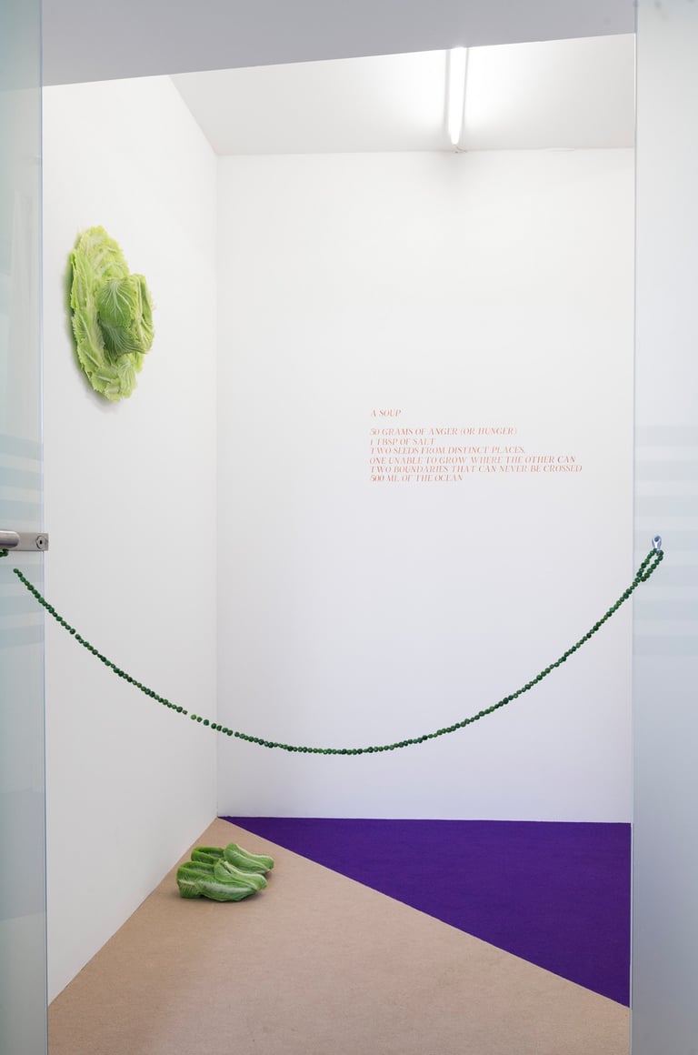 At the Kestner Gesellschaft, Pacheco Dehne has created an unreal and surrealistic scene in which the certainties of the known world are shifted. To All My Roaring Bodies, The Seeds And The Mountains is the first exhibition to occupy the space on the way to the kitchen. She investigates the lost meaning of the site and explores the potential of cooking as a cultural practice that, at its core, harbors a resistive force. Pacheco Dehne opens a dialogue about how cooking and eating together creates new identities, how feminist anger makes use of cultural technique, and the kitchen distributes its power into the world as a cell of resistance.